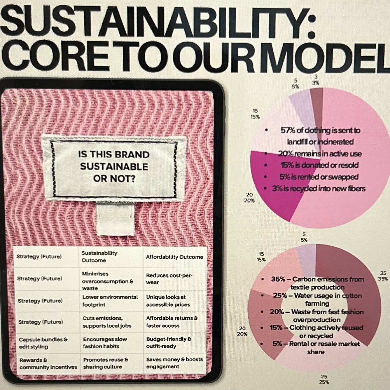 Motivated by growing concerns around fashion’s environmental impact and shifting consumer attitudes toward sustainability and affordability, Charlotte’s experience working with the fashion rental company LOANHOOD during her BA gave her the insight and drive to take this concept further — creating a unique, forward-thinking platform that redefines how we engage with fashion.