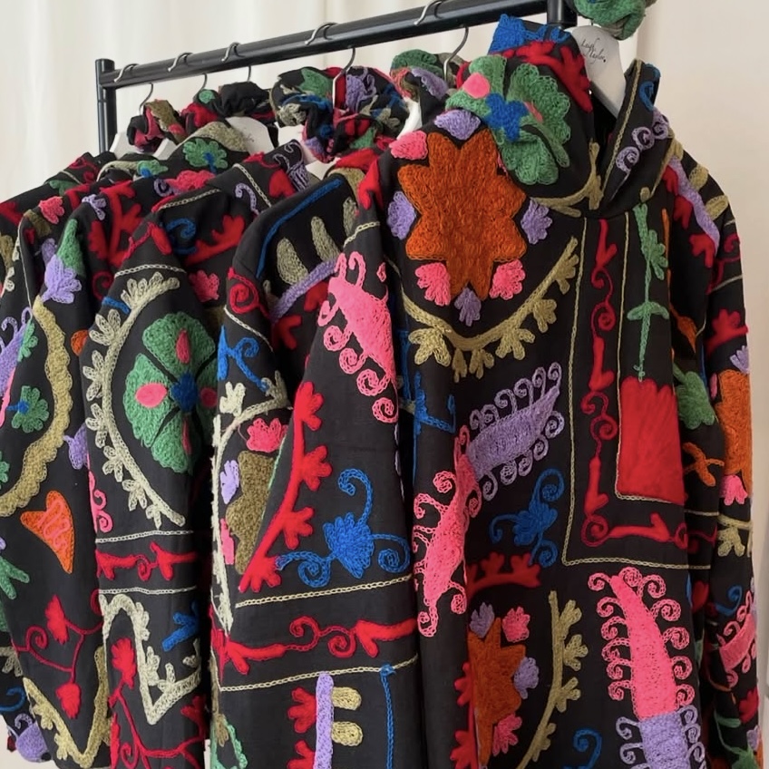 My MA project explores the tension between quiet, meaningful design and the fast-paced, performance-driven nature of today’s fashion industry. Through my independent brand, Leigh Taylor, I have spent over a decade navigating both worlds from hand cutting lace at Vera Wang in New York to sewing artisan fabrics into fleeces in my small UK studio. The project builds on my lived experience collaborating with artisans in India and Guatemala, where I worked with women’s weaving cooperatives and home embroiderers using traditional craft techniques.